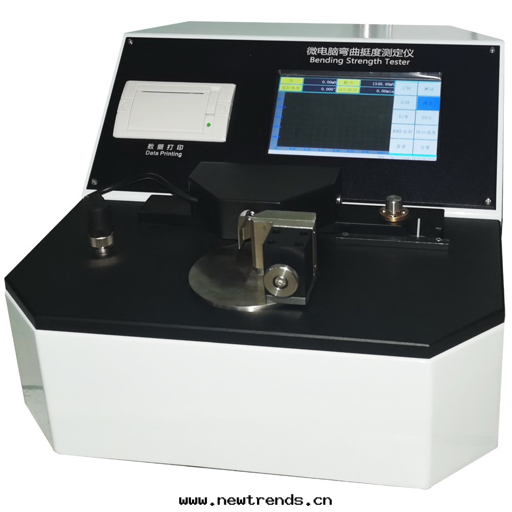 在(zài)規定(dìng)条(tiáo)件下(xià)測量(liàng)一端被(bèi)夾試樣(yàng)彎曲(qū)至(zhì)15角(jiǎo)时(shí)所(suǒ)需要(yào)的(de)力或力矩,以(yǐ)mN表(biǎo)示,如(rú)試樣(yàng)挺度(dù)过(guò)大(dà)或彎曲(qū)至(zhì)15角(jiǎo)时(shí)試樣(yàng)斷裂,则可(kě)彎曲(qū)試樣(yàng)調整至(zhì)7.50角(jiǎo),測定(dìng)結果(guǒ)乘以(yǐ)2可(kě)以(yǐ)得到(dào)一个近(jìn)似值,但要(yào)在(zài)報告中(zhōng)注明(míng)。
